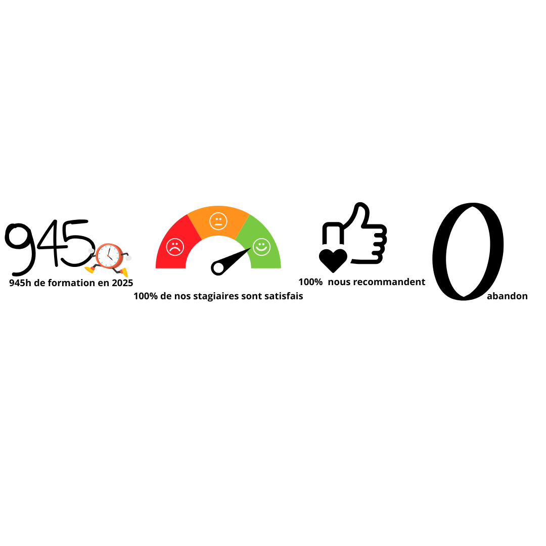Au total en 2025, 62 stagiaires ont suivi nos formations pour 945 heures de formation.